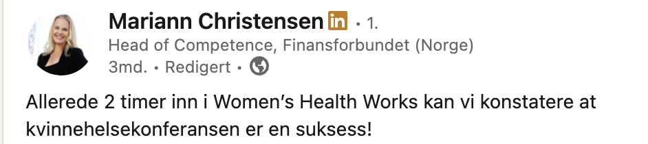 - Kompetanseheving: Øk kompetansen din på et av de viktigste temaene i arbeidslivet nå: kvinnehelse