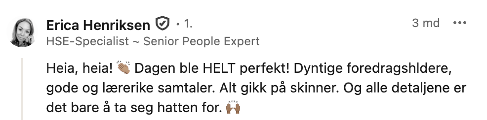 - Få konkrete tiltak du kan ta med tilbake til arbeidsplassen.