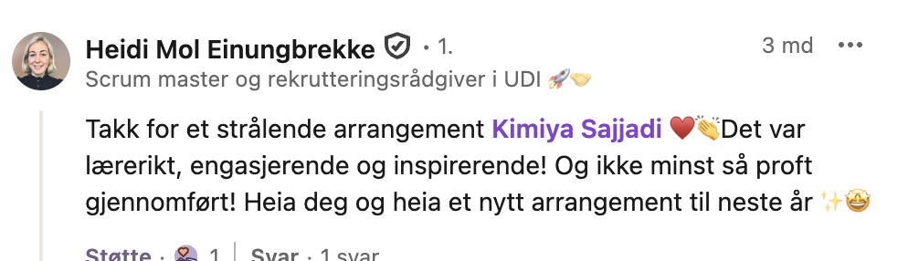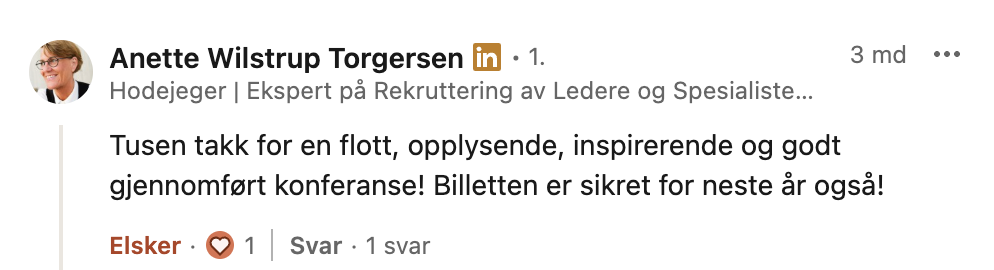 - Erfaringsutveksling: i tillegg til faglig påfyll får du muligheten til å sparre med andre i samme rolle.